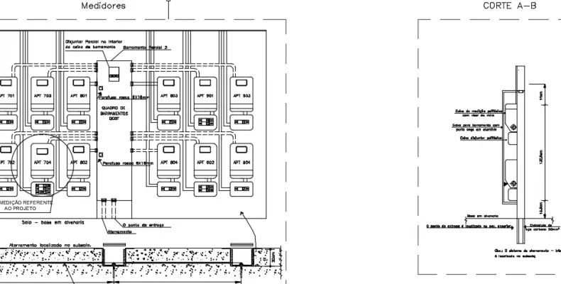 O projeto contempla o dimensionamento da caixa de medição, o sistema de aterramento, os dutos e condutores, entre outros componentes essenciais. Esses elementos são cuidadosamente especificados para garantir o correto funcionamento do sistema e a proteção tanto das pessoas quanto dos equipamentos conectados à rede elétrica.